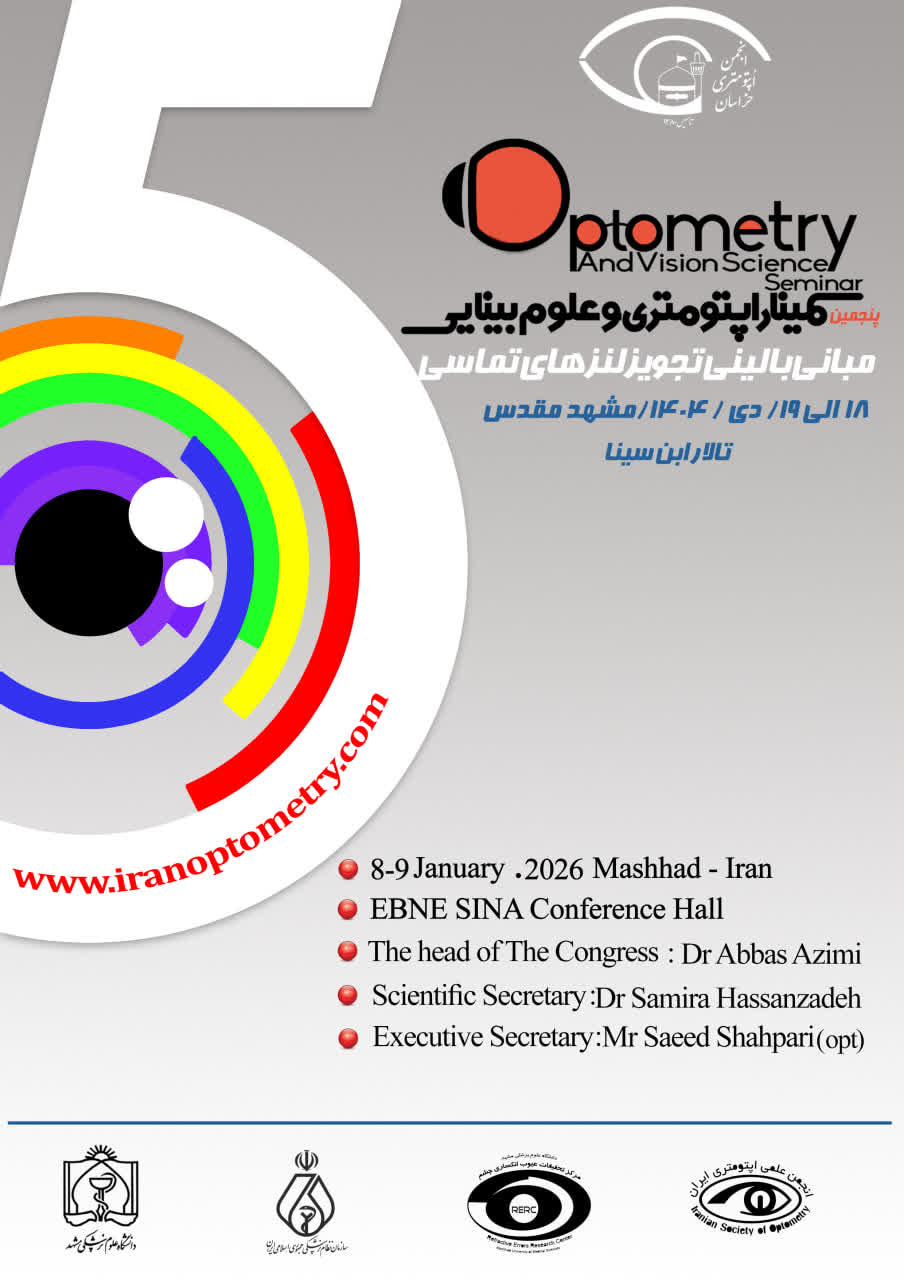 انجمن اپتومتري خراسان موضوع سمینار :مبانی بالینی تجویز لنزهای تماسی تاریخ : 18 و 19 دی ماه سال 1404 مکان : مشهد ، چهارراه دکتری سالن همایش ابن سینا | ||||
